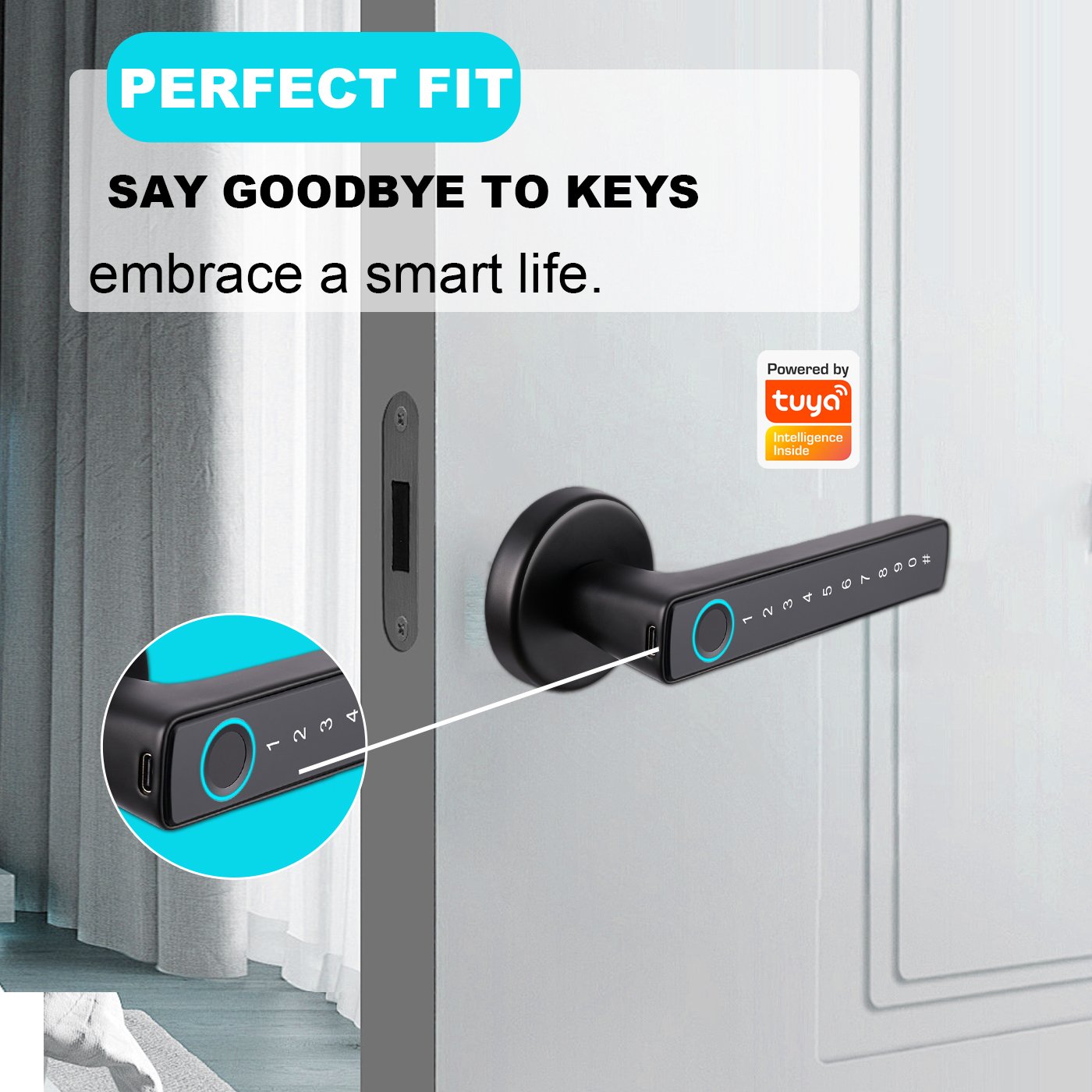 Featuring a high-precision semiconductor fingerprint sensor, the lock grants access in less than 0.3 seconds, ensuring both speed and security. With integrated Tuya/Smart Life App support, users can easily manage access records, set temporary codes for guests, and monitor entry logs remotely. Its “DIY Friendly” design allows for a seamless installation on standard doors without the need for extra drilling or professional assistance. Powered by energy-efficient batteries with an emergency USB-C charging port, the Kinfort smart handle ensures you are never locked out. Whether for an Airbnb rental or a modern workspace, this electronic door handle provides the ultimate convenience and peace of mind for any indoor environment.